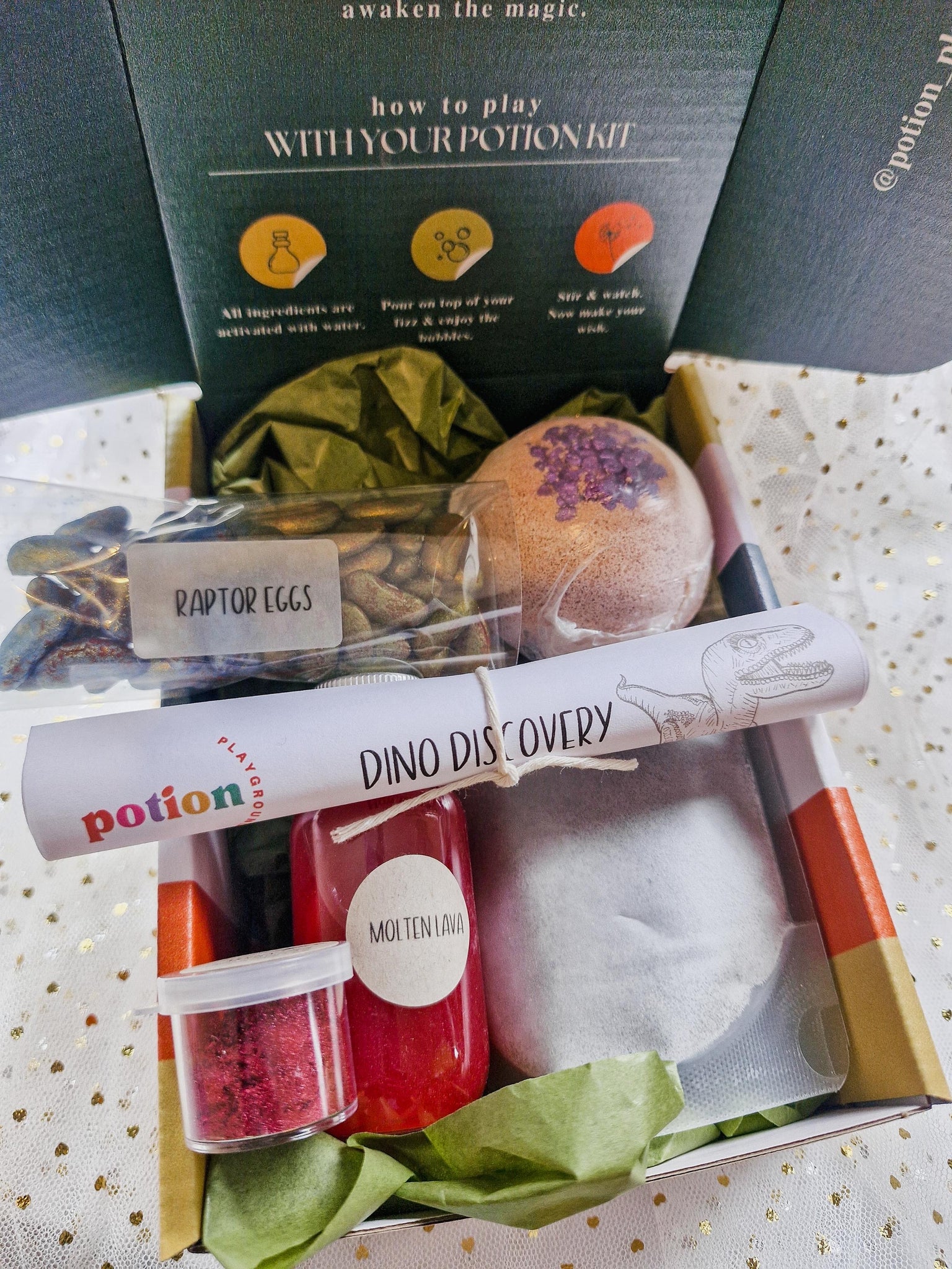 Raptor rocks and volcanic ash will soround your child with this fun potion kit. But be quick, mummy dino is looking for her eggs.